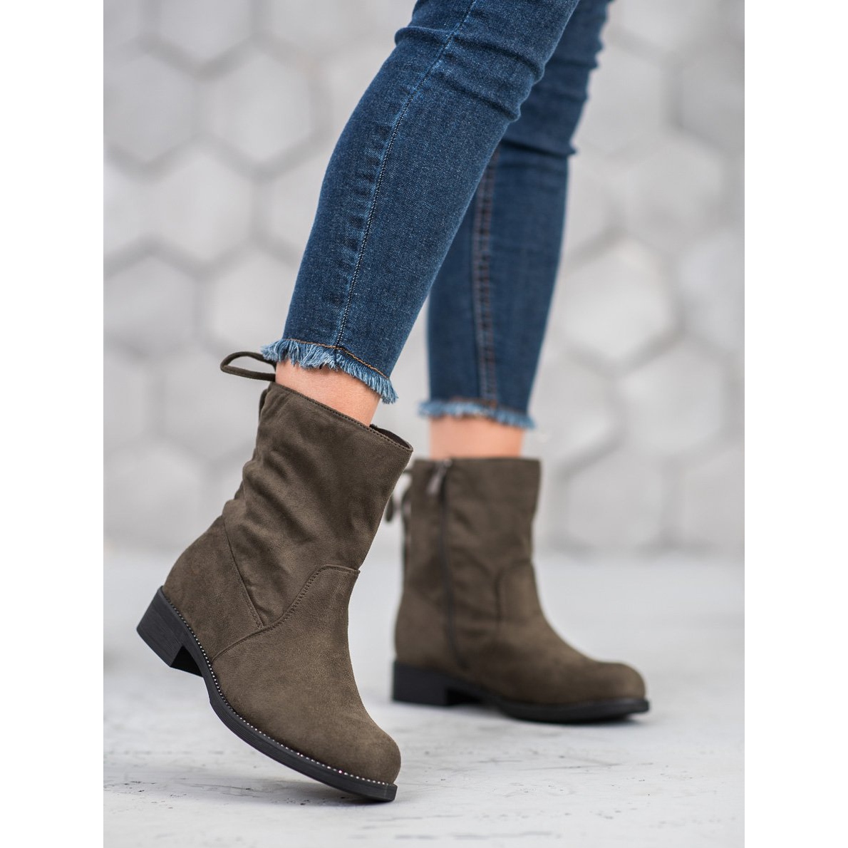 Descubra extraordinária elegância e conforto em qualquer momento com botins de camurça verde da SDS. Estes elegantes botins femininos são a escolha perfeita para os dias mais frios, combinando um design moderno com um conforto incomparável. Com um salto largo e estável de 3,5 cm, você pode sobreviver facilmente à aventura do dia, e o fecho de correr ajustável torna um prazer calçá-los.