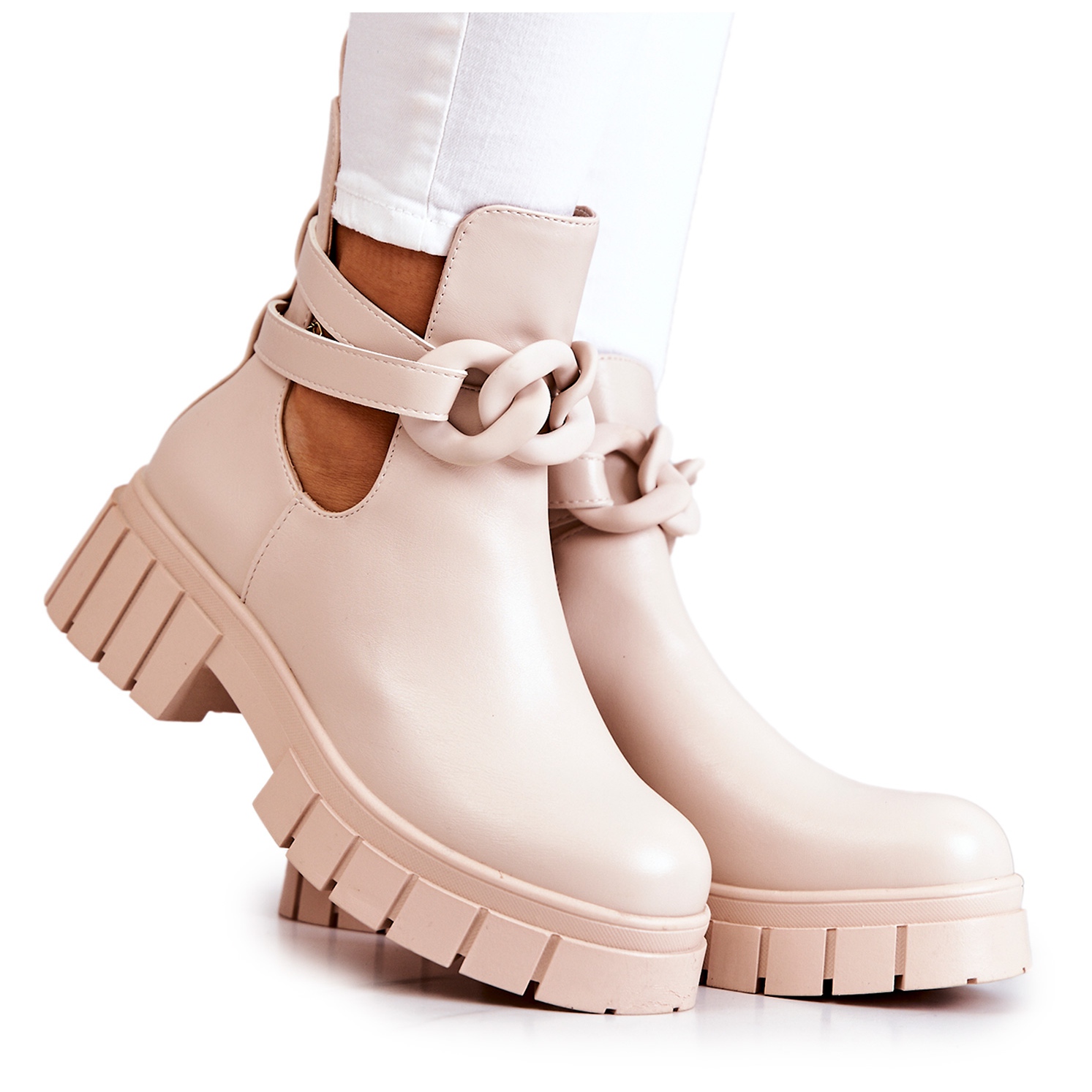 Detalhes: FB2 Botinhas de couro com corte Karen bege
