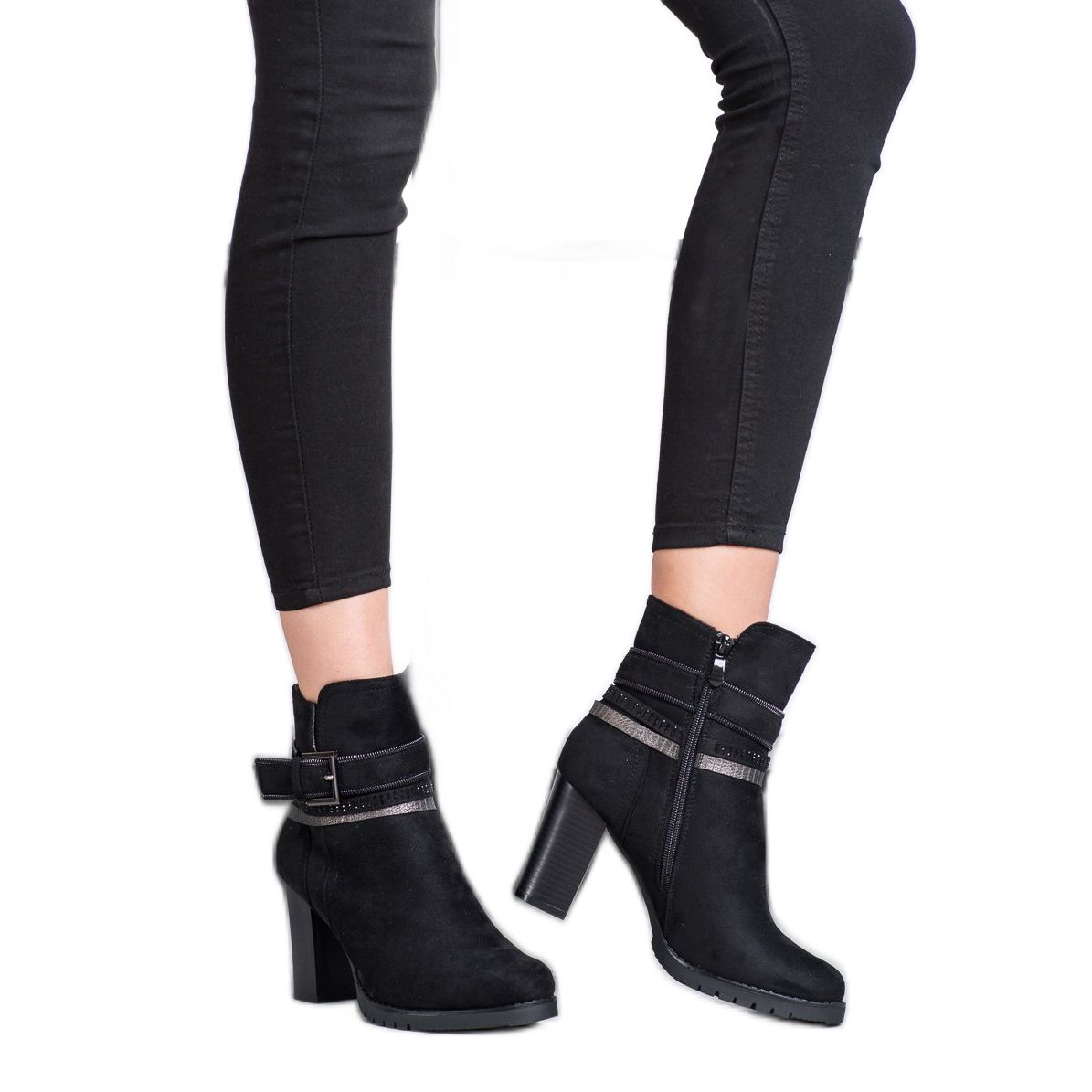 Queentina Queentina Botinhas Elegantes De Camurça preto prata