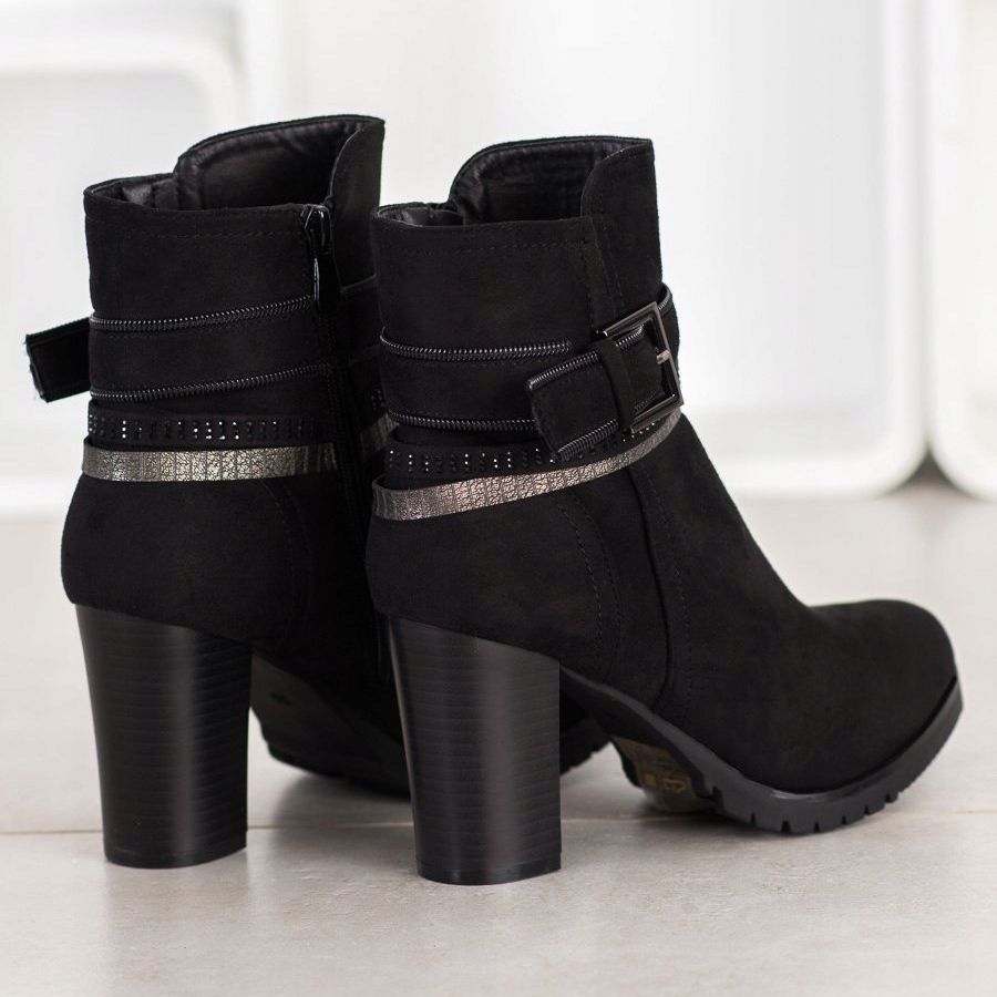 Detalhes: Queentina Botinhas Elegantes De Camurça preto prata