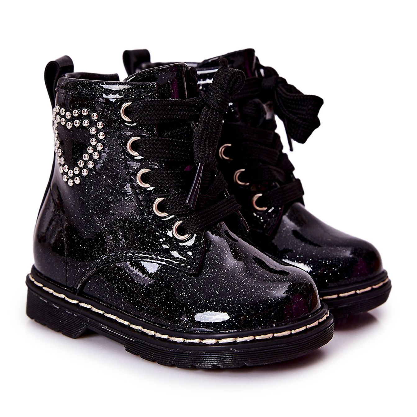 Detalhes: WT1 Botinhas pretas brilhantes lacadas para crianças preto