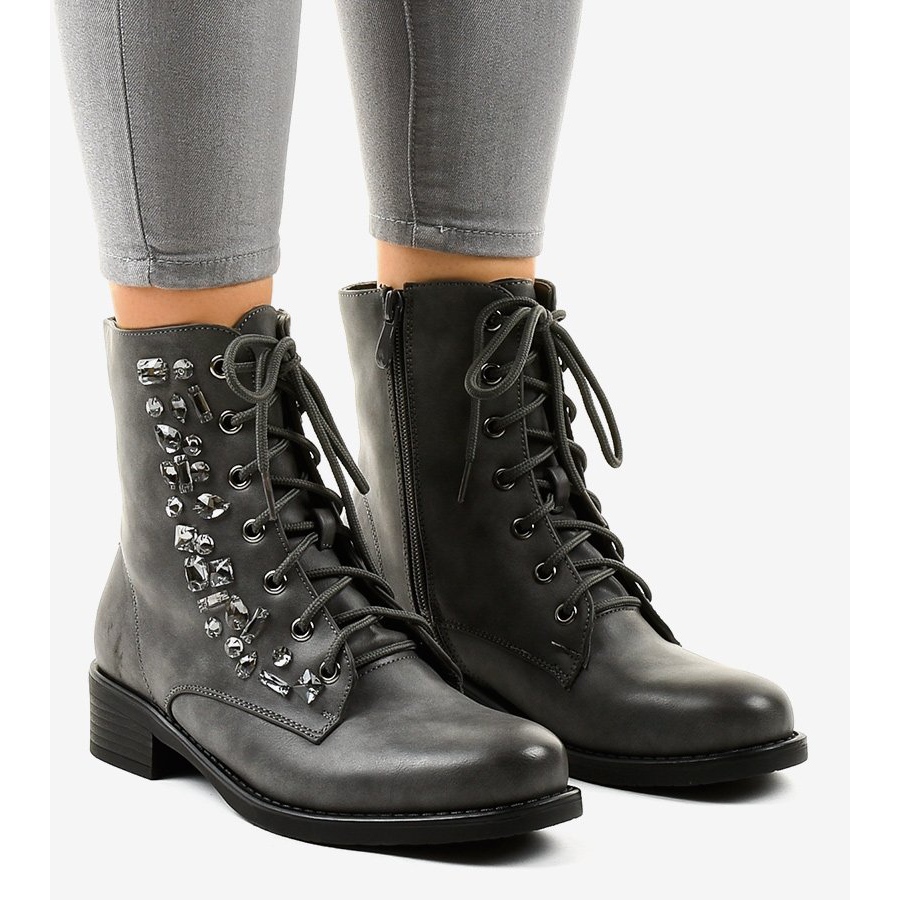 Detalhes: Botins achatados cinzentos com pedras 0-268 cinza
