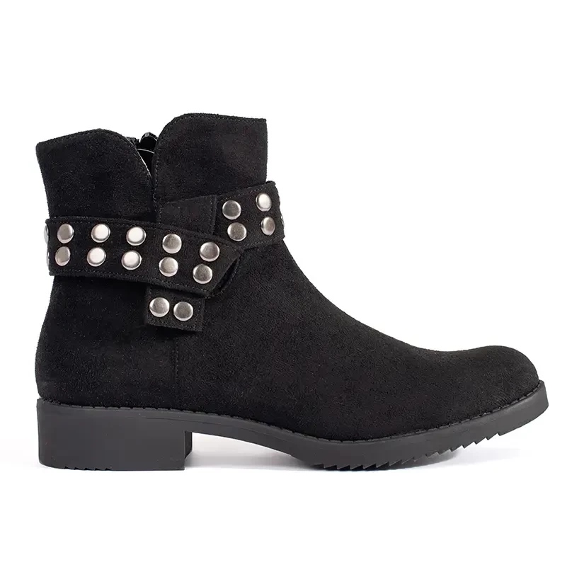 Detalhes: Botins baixos femininos de camurça com strass preto