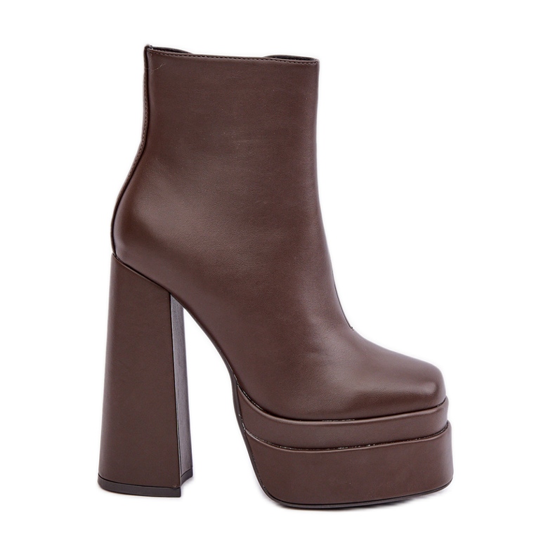 Botins chocolate quentes em plataforma enorme e salto alto marrom