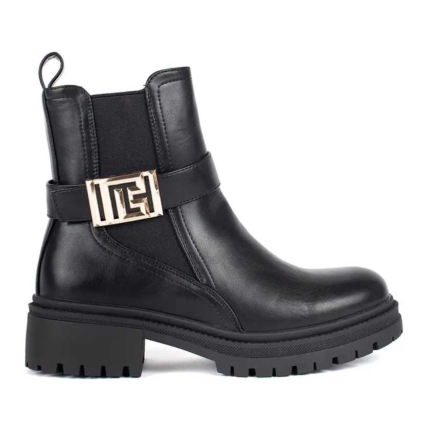 - Modelo: Botins clássicos pretos com tira decorativa