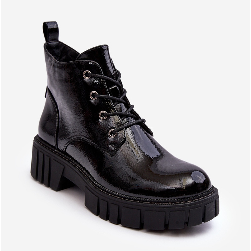 Sergio Leone Sergio Leone Botins com cadarço isolados em couro envernizado preto Bjorg