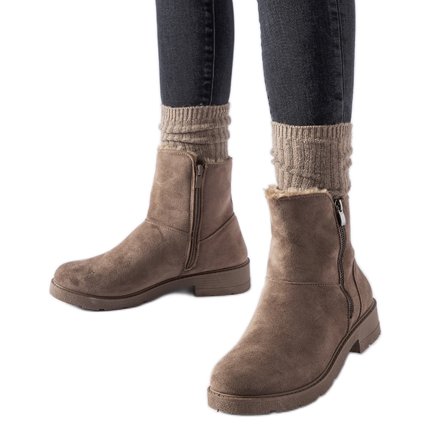 Detalhes: Botins com isolamento marrom e zíper da Salona