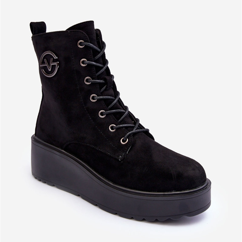 Detalhes: Vinceza Botins de camurça em plataforma maciça preto Lavica preto