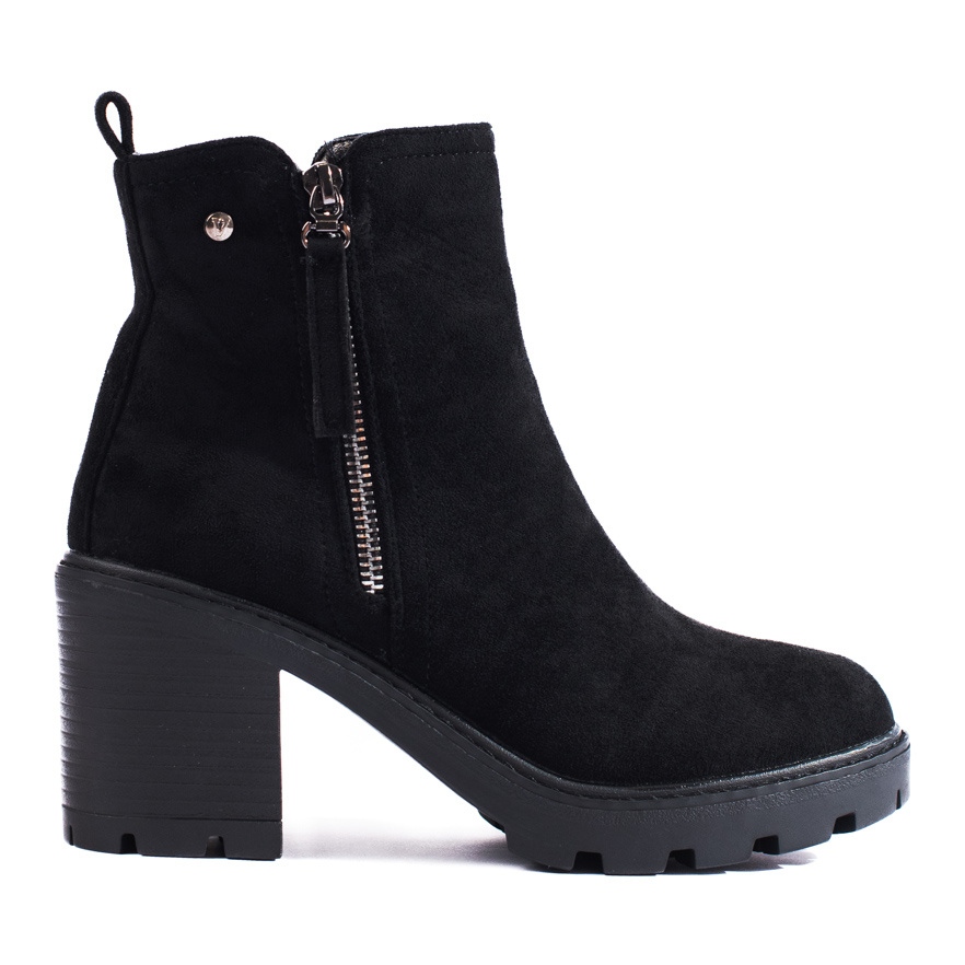 Um poste largo, com 8 cm de altura, oferece estabilidade mantendo uma aparência elegante. Este tipo de salto é uma opção conveniente para quem deseja adicionar alguns centímetros de altura sem abrir mão do conforto ao caminhar. O fechamento com zíper facilita calçar e tirar as botas rapidamente e acrescenta um aspecto prático ao uso diário.
