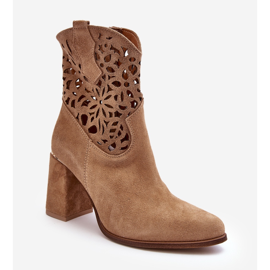 Descubra elegância e estilo com botins de camurça vazados da Lewski Shoes 3264 em tom bege marrom escuro. Estas botas da moda são a escolha perfeita para mulheres que desejam aliar conforto a um design único. Fabricados em couro natural de alta qualidade, têm um aspecto excepcionalmente elegante graças a um delicado padrão vazado que acrescenta leveza e sutileza.