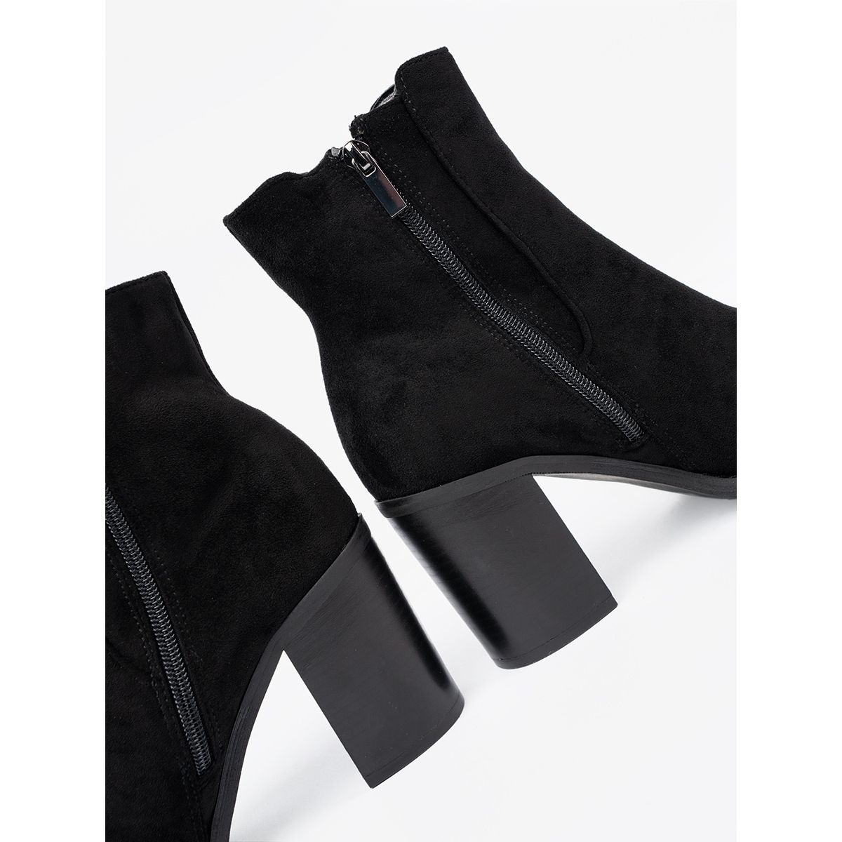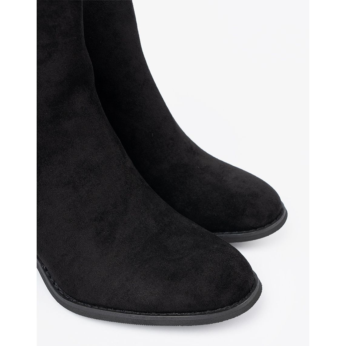 Feito de camurça de imitação de alta qualidade, as botas parecem extremamente impressionantes e sua cor preta clássica os torna atemporais e fáceis de combinar com várias roupas. Um nariz redondo e o salto construído não apenas fornecem estética, mas também conforto de desgastar ao longo do dia.
