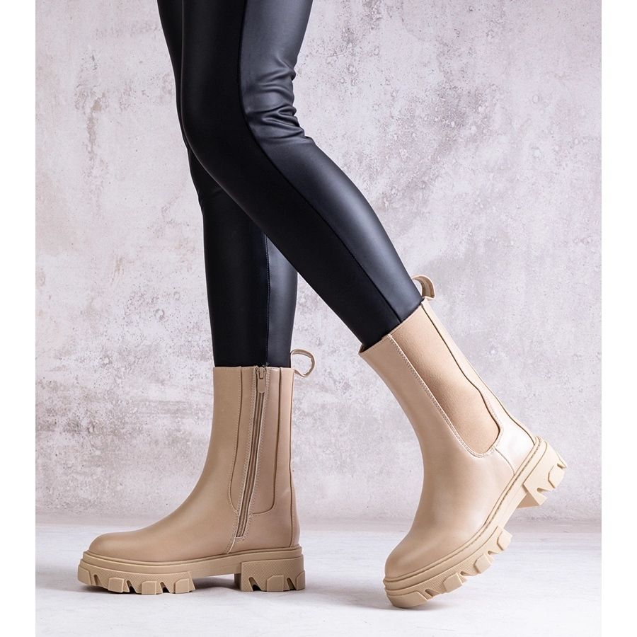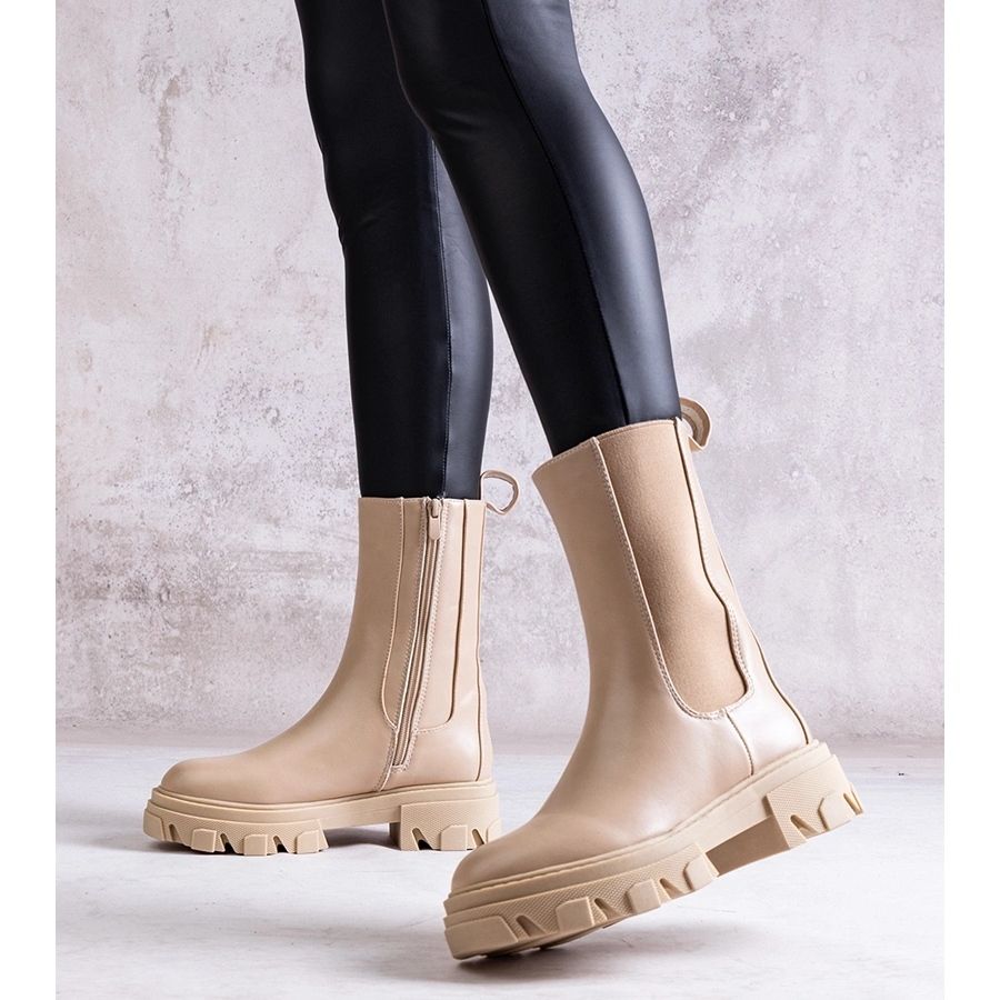 O calcanhar com uma altura de 4,5 cm torna as botas estáveis e confortáveis, ideais para usar todos os dias. A cor bege harmonia harmonia com muitas outras cores, o que as torna uma adição universal a qualquer guarda -roupa.