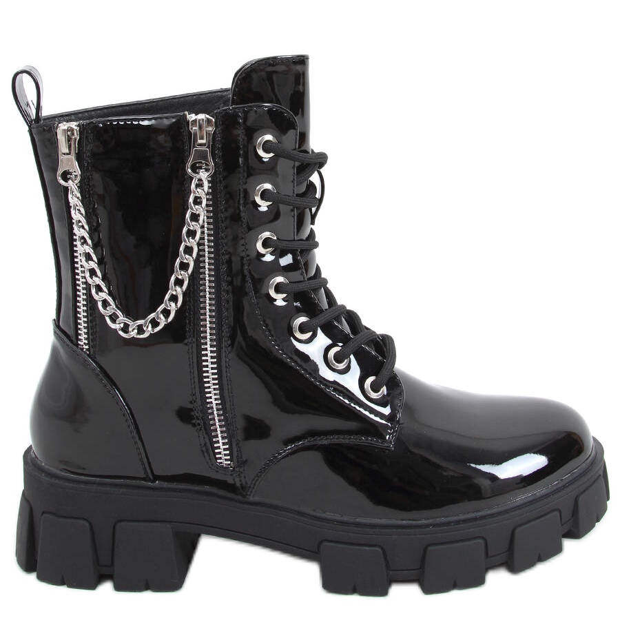 Inna marka Botins de couro envernizado com corrente Mina Black preto