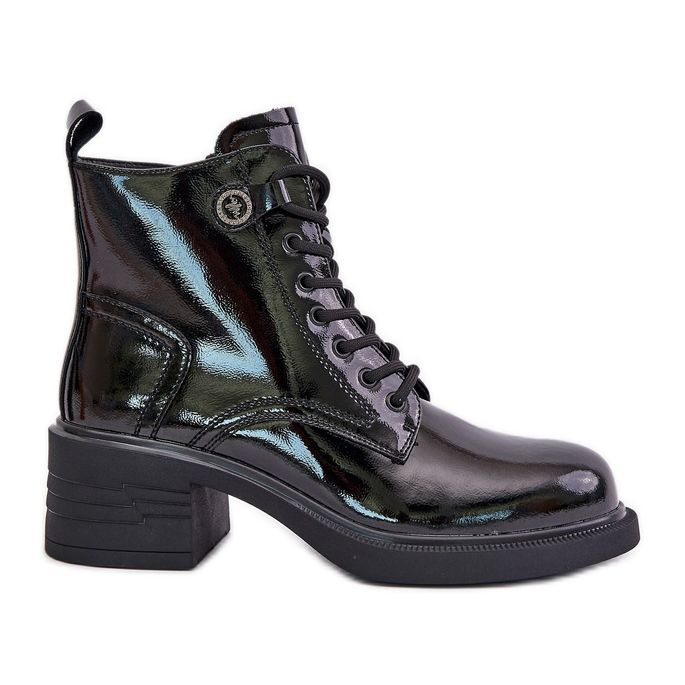Situado em um salto sólido na forma de um bloco de 5,5 cm de altura, assegure estabilidade e conforto ao caminhar. O laço e o zíper adicionais permitem que você combine perfeitamente com o pé, o que os torna não apenas bonitos, mas também funcionais. Um nariz redondo e aquecimento com um cobertor de calçados efetivamente protege contra o frio, o que os torna a escolha ideal para os dias de inverno.