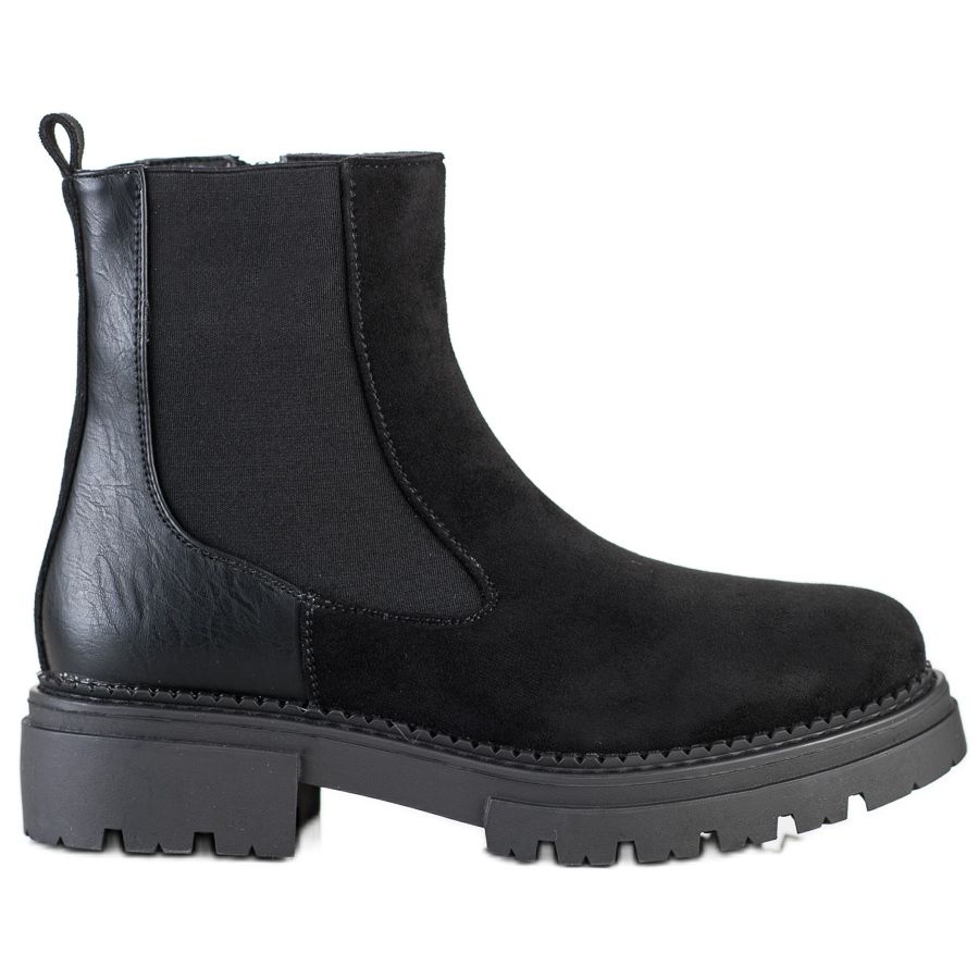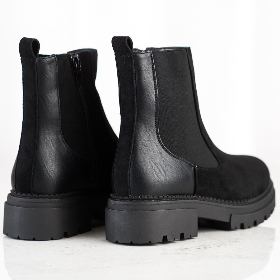 As botas caracterizam-se por um salto reforçado e reforçado, garantindo estabilidade e conforto de uso. A altura do salto de 4 cm e a altura da plataforma de 2,5 cm tornam estes sapatos confortáveis para usar o dia todo. A ponta redonda acrescenta conforto adicional e a parte superior na altura do tornozelo oferece suporte adequado.