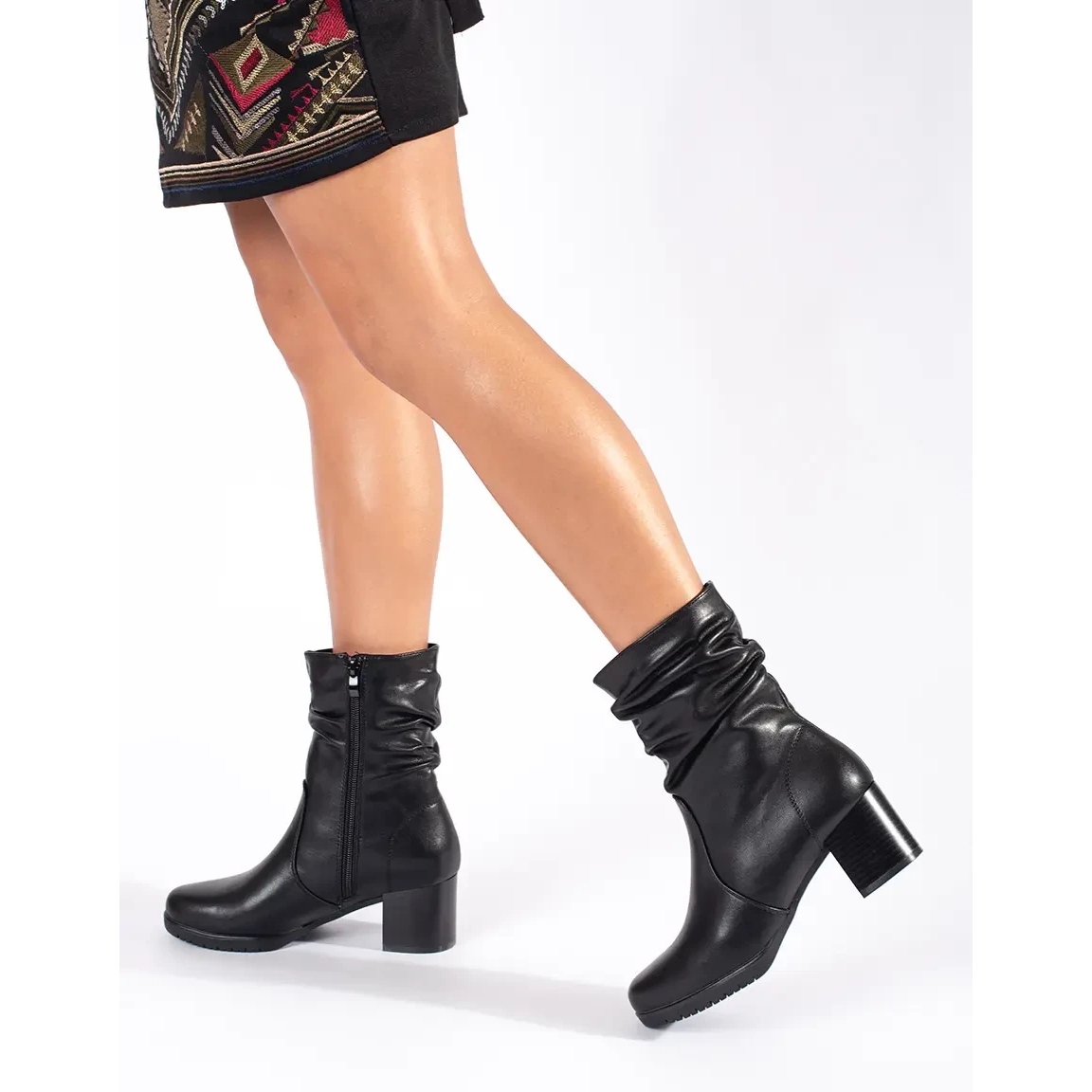 Detalhes: Botins enrugados femininos de couro preto por Sergio Leone