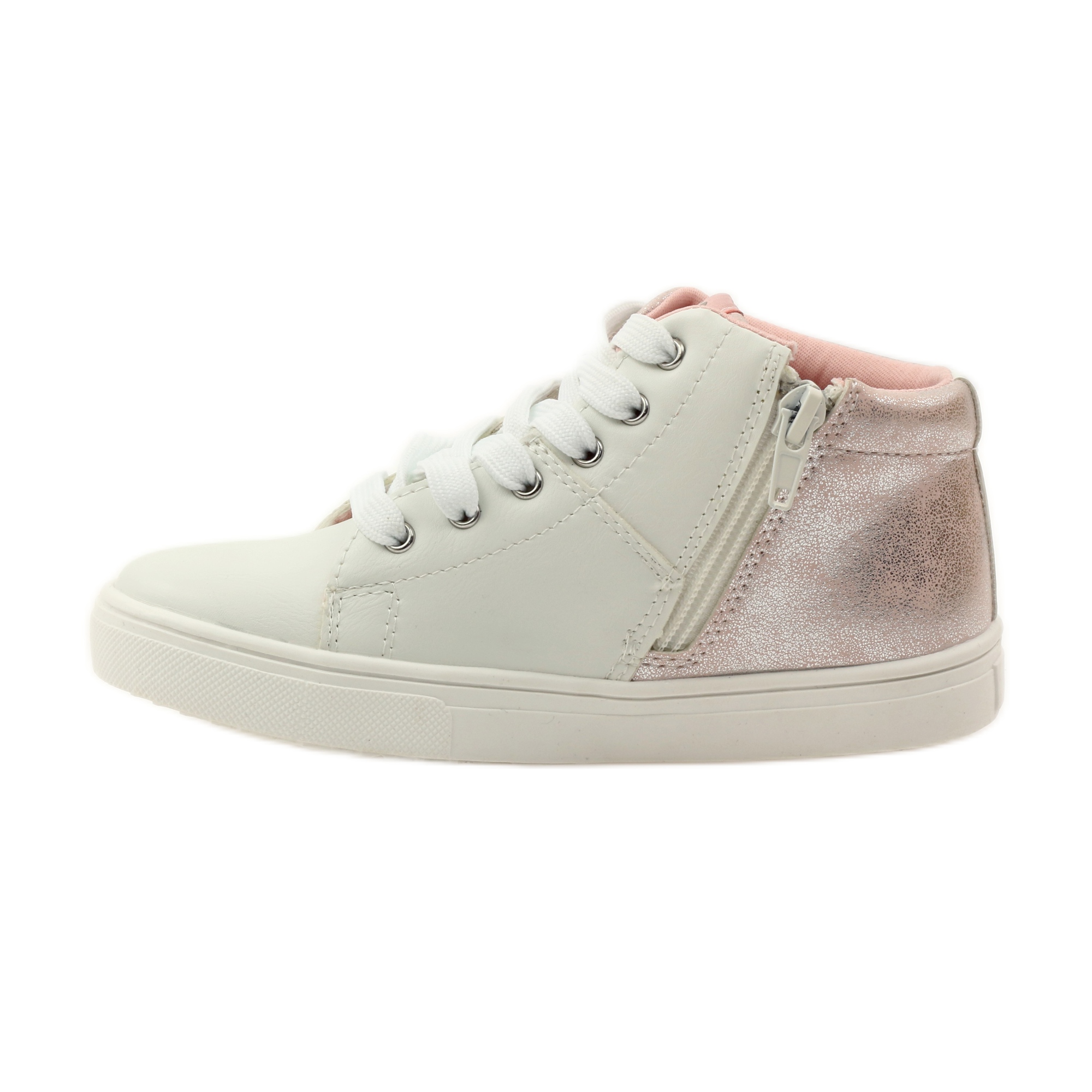 Cores interessantes - branco com detalhes em rosa e prata - farão com que cada pequeno criador de tendências se sinta especial com elas. O design destes sapatos foi cuidadosamente pensado para enfatizar o estilo infantil e adicionar autoconfiança.