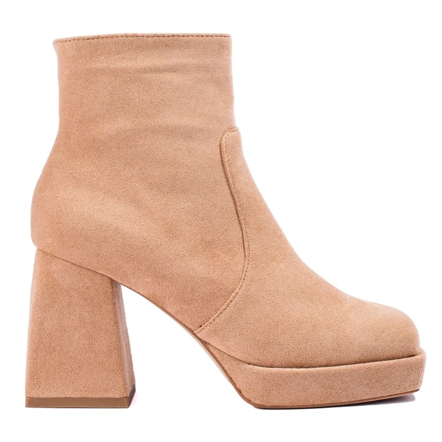 Botas femininas bege em um amplo pilar - um corte universal que combina conforto com elegância. Feito de camurça ecológica, perfeita para dias mais frios, graças ao aquecimento e um cobertor de calçados macios. Uma ampla e estável pós -altura de 9 cm, com 2,5 cm de plataforma, oferece conforto a pé e um perfil elegante da figura. A trava lateral facilita a instalação, construída -p -up e o calcanhar rígido estabiliza o calcanhar.