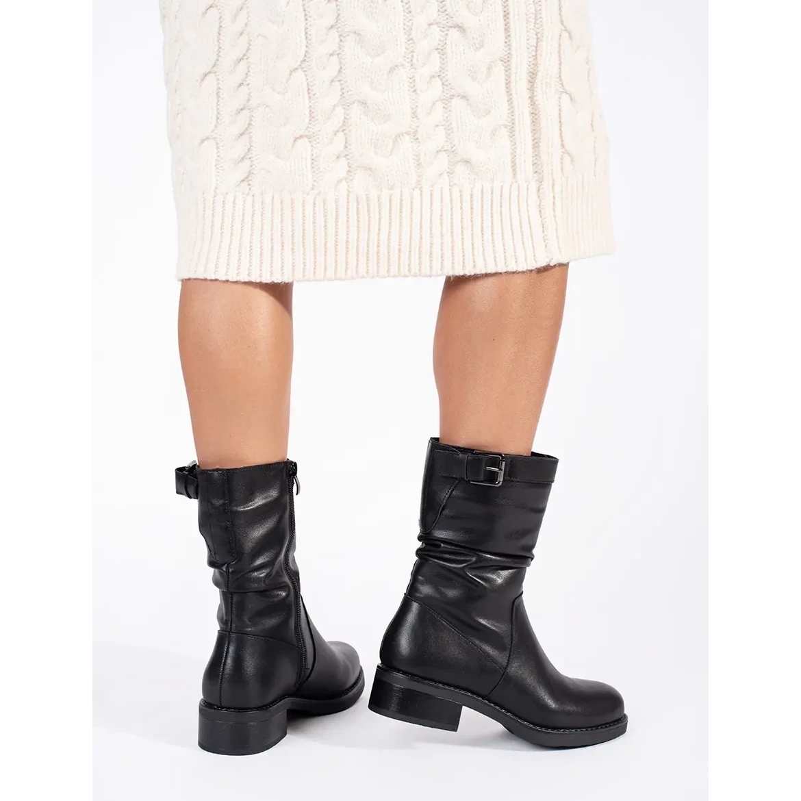 Descubra a elegância e o conforto com as botas femininas de Sergio Leone, que certamente se tornarão parte integrante do seu guarda-roupa outono-inverno. Essas botas pretas e isoladas de couro são uma combinação perfeita de estilo e funcionalidade. Feito de couro natural da mais alta qualidade, eles não apenas parecem extremamente arrumados, mas também garantem durabilidade e conforto do uso.