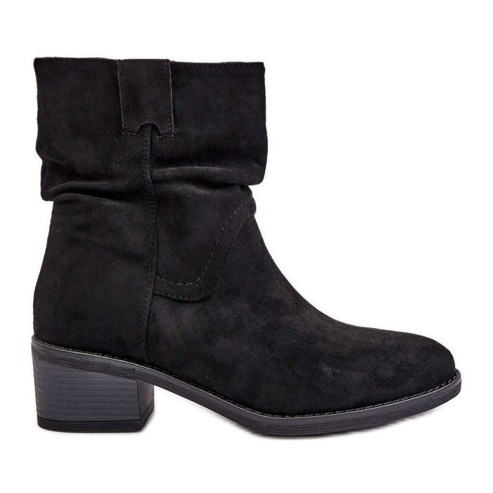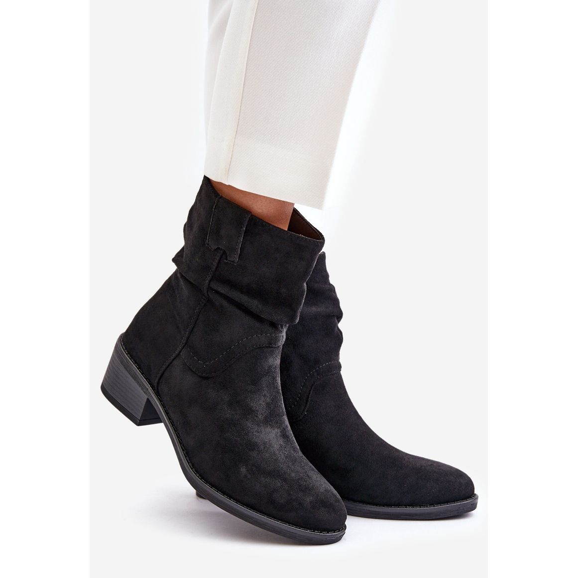 Detalhes: Botins femininos com isolamento Zinanya preto e salto baixo franzido
