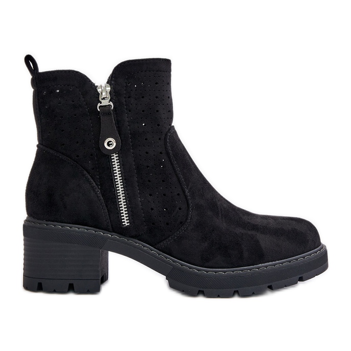 Detalhes: Botins femininos com padrão vazado e salto alto, Oviria preto