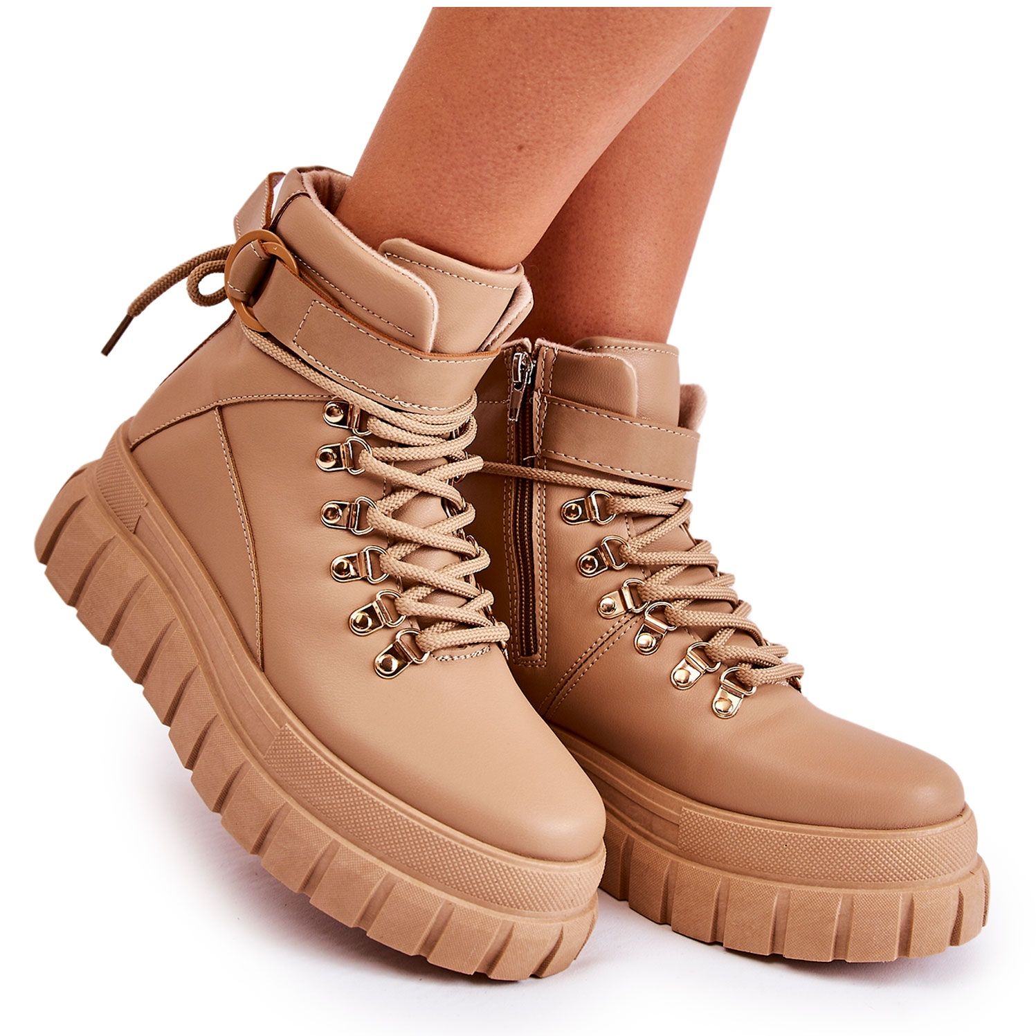 Detalhes: FB3 Botins femininos da moda bege La Blanca