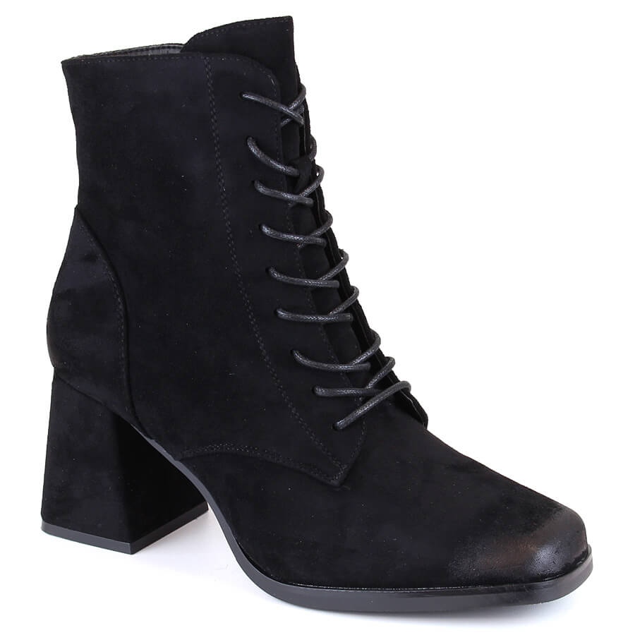 Detalhes: Botins femininos de camurça com atacadores e zíper, pretos Potocki SZ12185