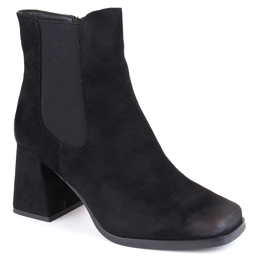 Detalhes: Botins femininos de camurça com salto alto decorativo, preto Potocki SZ12183