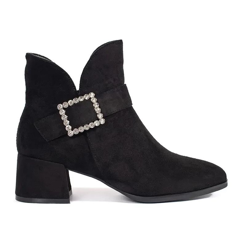 Detalhes: Botins femininos de camurça preta com fivela prateada preto