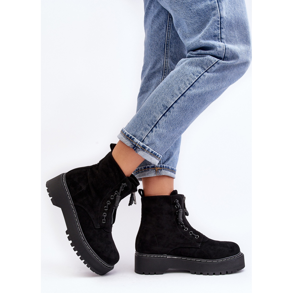 Inna marka Botins femininos de camurça Trapper com sola grossa e zíper, Edivame preto