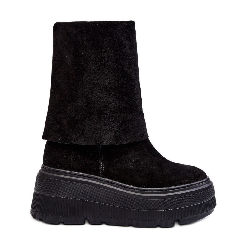 Detalhes: Botins femininos de camurça Zazoo 3410 em plataforma enorme, pretos