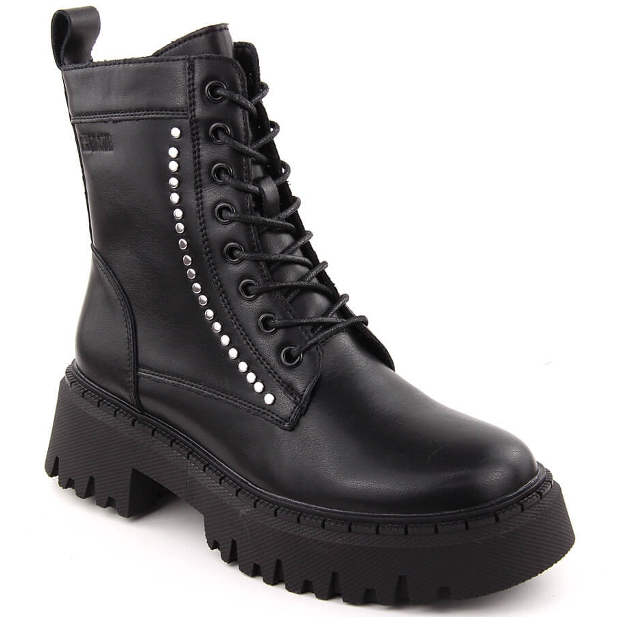 Detalhes: Botins femininos de couro com isolamento e rebites, pretos Big Star OO274A255