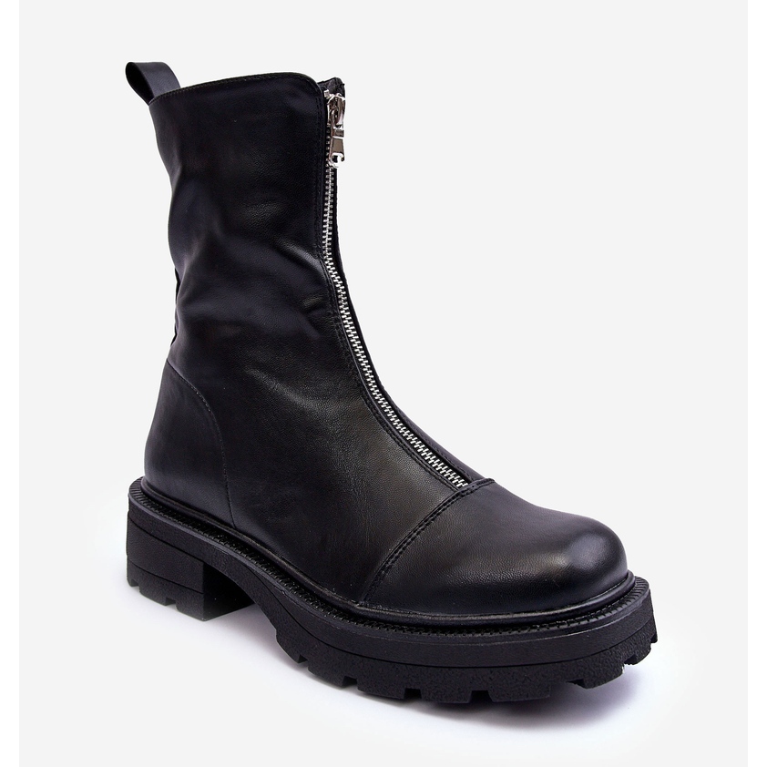 Inna marka Botins femininos de couro com zíper preto Aravalur preto