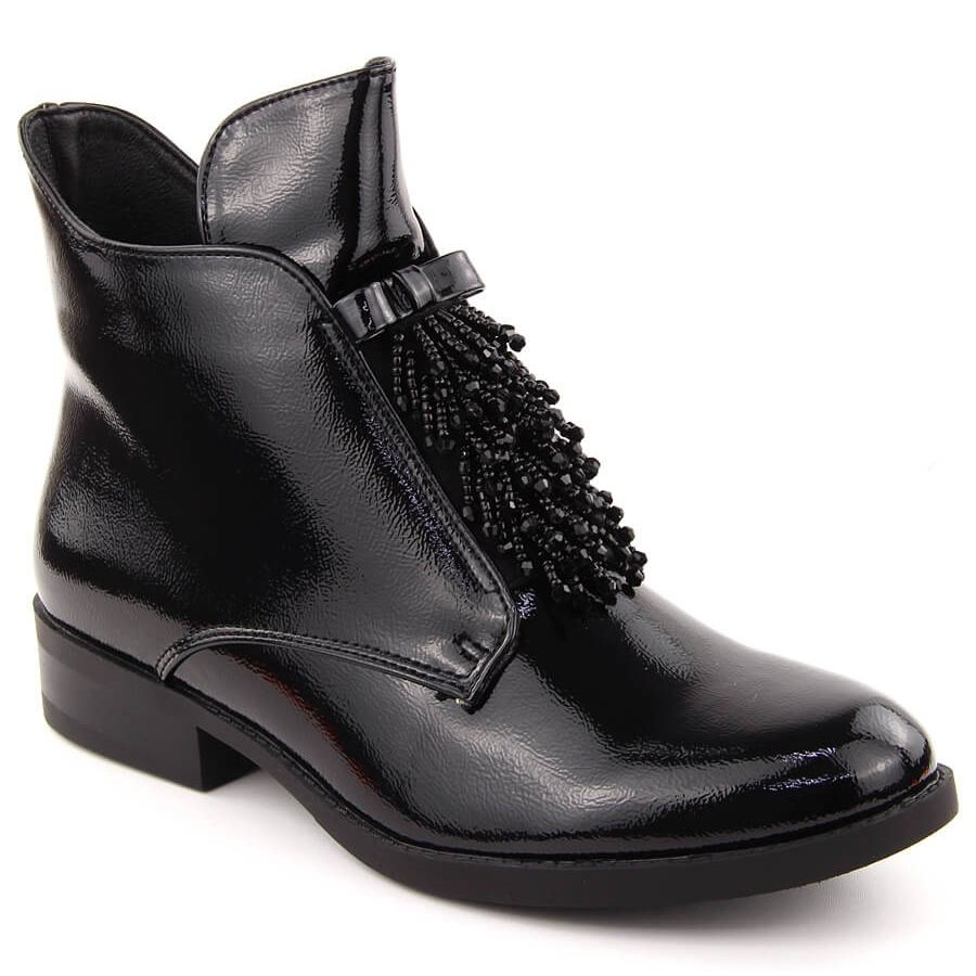 Detalhes: Botins femininos de couro envernizado com miçangas, pretos S.Barski
