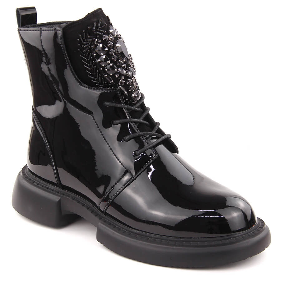 Detalhes: Botins femininos de couro envernizado preto com pedras Filippo DBT6568