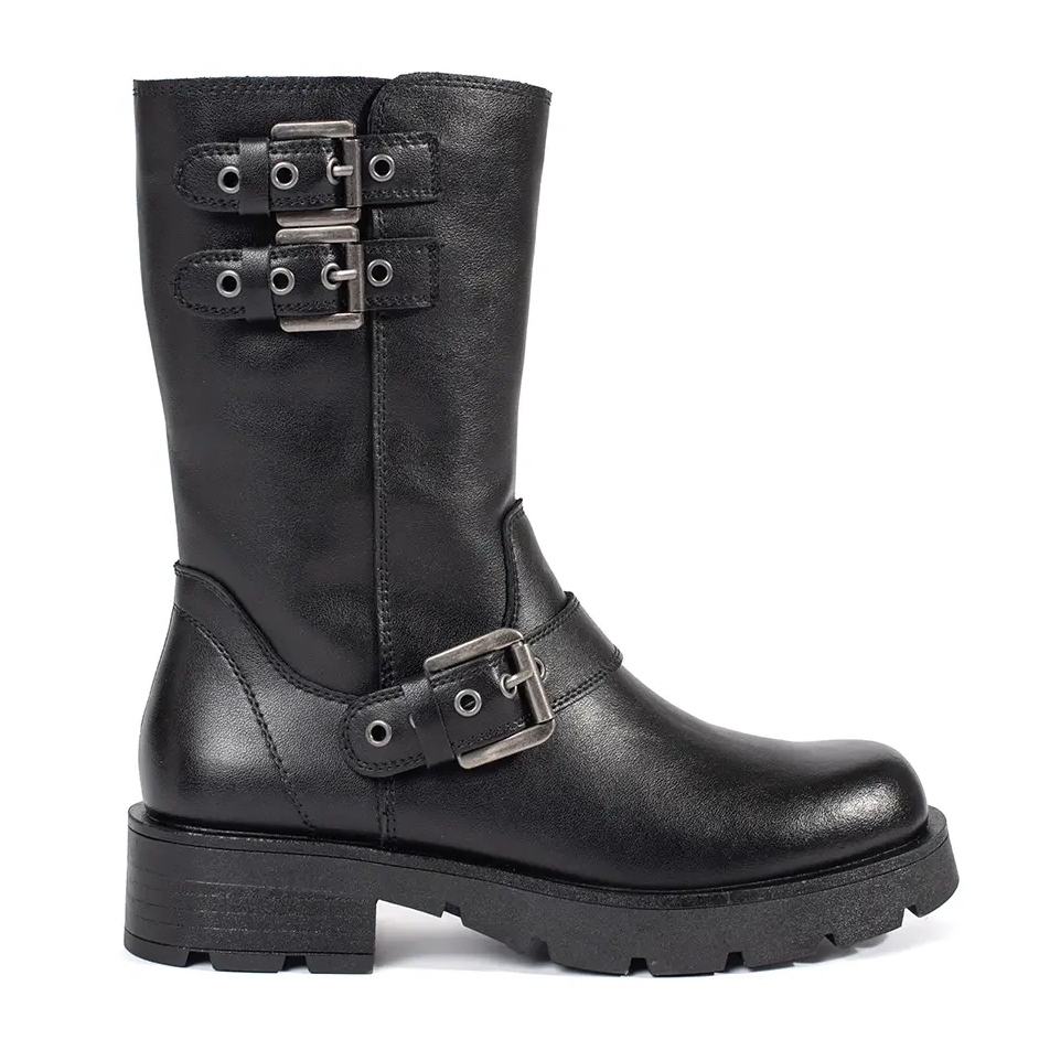 As botas femininas de couro preto na plataforma Sergio Leone são uma ótima opção para todas as mulheres da moda que valorizam uma combinação de conforto e estilo. Feito de couro natural de alta qualidade, essas botas combinam elegância com frouxidão diária, o que as torna ideais para muitas ocasiões.