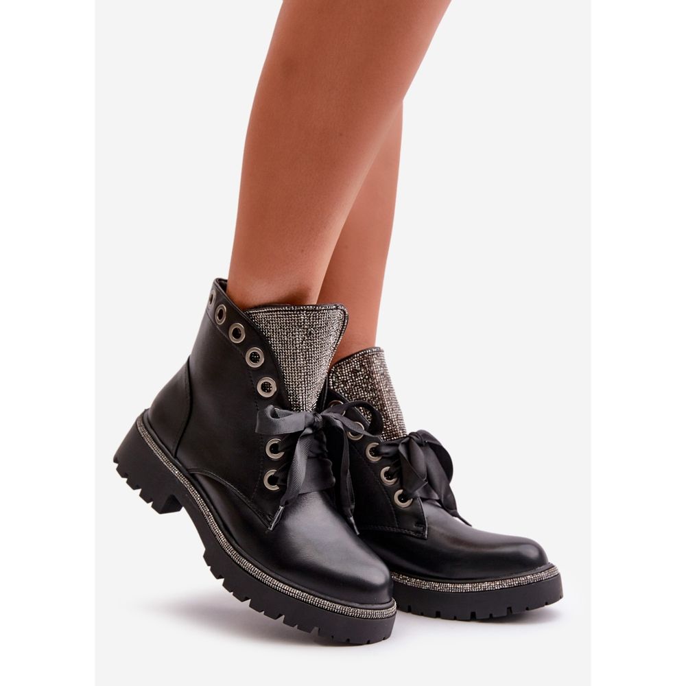 Inna marka Botins femininos decorados em couro ecológico preto Rilatha