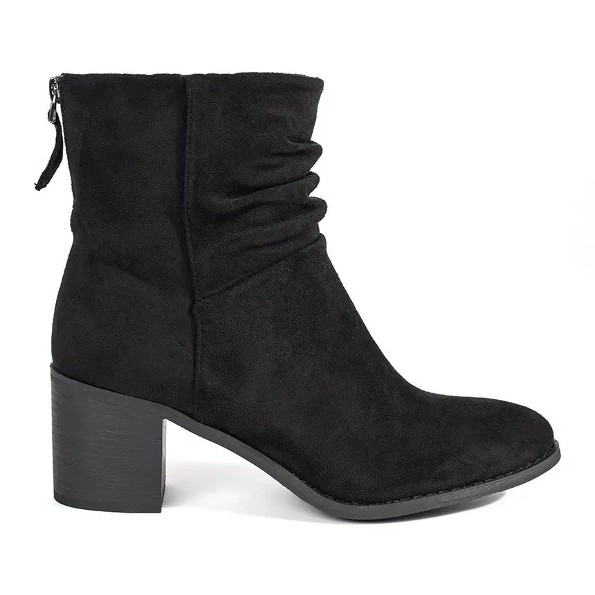 Inna marka Botins femininos em camurça preta com parte superior com folhos preto