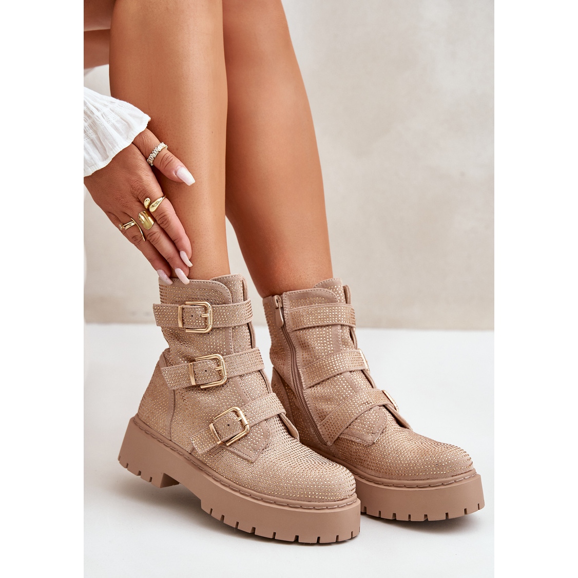 Botas femininas isoladas com decoração bege é a escolha perfeita para a próxima temporada de outono e inverno. Criados para mulheres que valorizam o conforto e o estilo, essas botas são distinguidas por uma elegante superior decorada com zircões e strass eficazes que lhes dão um personagem único.