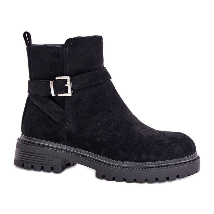 Botas femininas isoladas com grampo preto preto é uma ótima opção para dias frios de outono e inverno. Feito de camurça ecológica de alta qualidade, essas botas baixas combinam elegância e conforto de desgaste. Situado em um salto plano e estável com uma altura de 4 cm, eles proporcionam conforto durante as atividades diárias e, ao mesmo tempo, acrescentam um sotaque elegante de qualquer estilização.