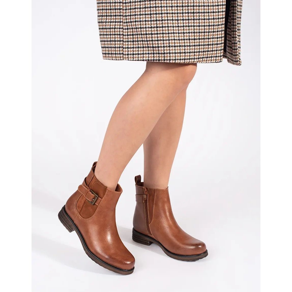 Inna marka Botins femininos marrons com fivela e salto baixo castanho
