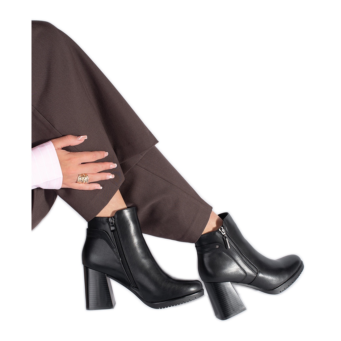 O fixador de zip facilita a saída e a decolagem, e uma sola de plástico lisa garante garra e conforto de uso. Essas botas pretas são essenciais em todas as femininas, combinando design da moda com soluções práticas.