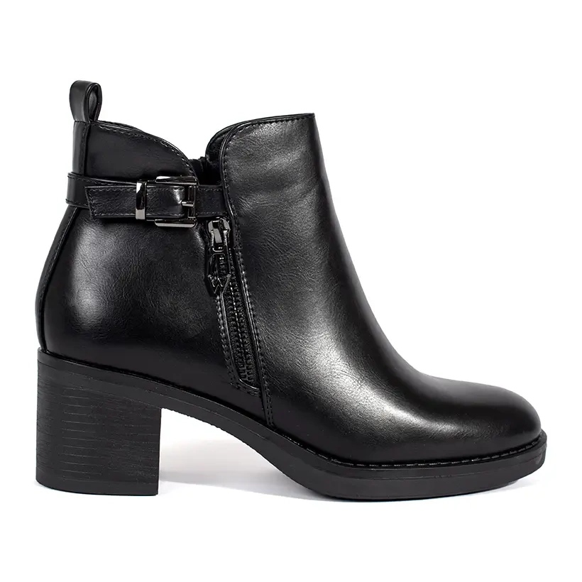 Detalhes: Botins femininos pretos com zíper e fivela decorativos