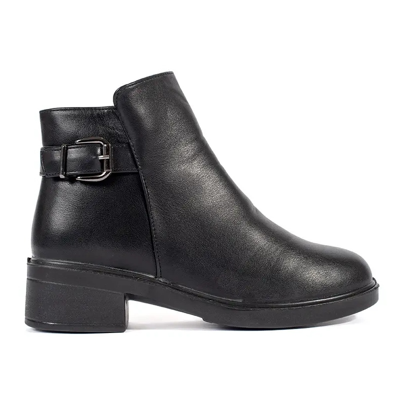 Inna marka Botins femininos pretos de salto baixo com fivela decorativa