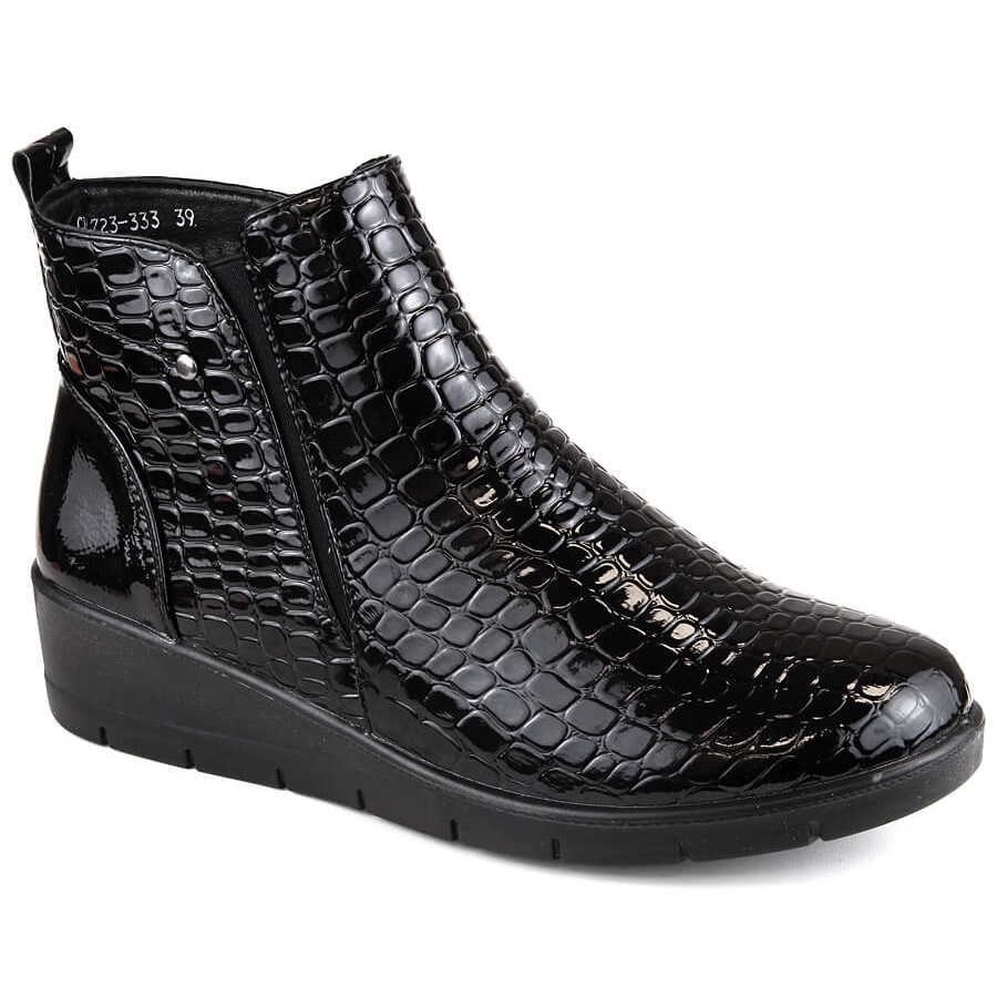 Detalhes: Botins femininos pretos envernizados com cunha na virilha, T.Sokolski Z23-333