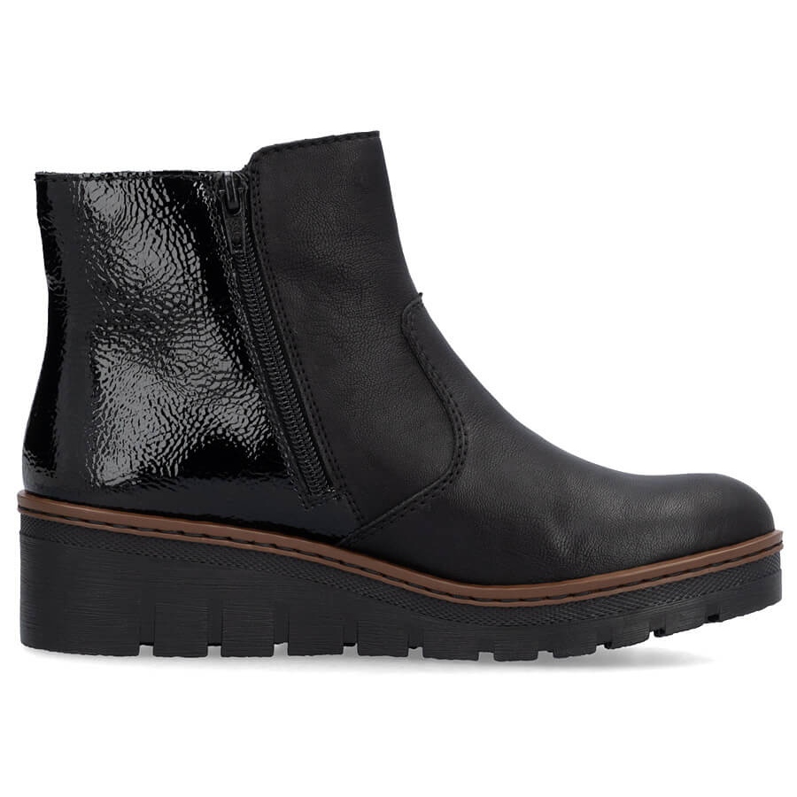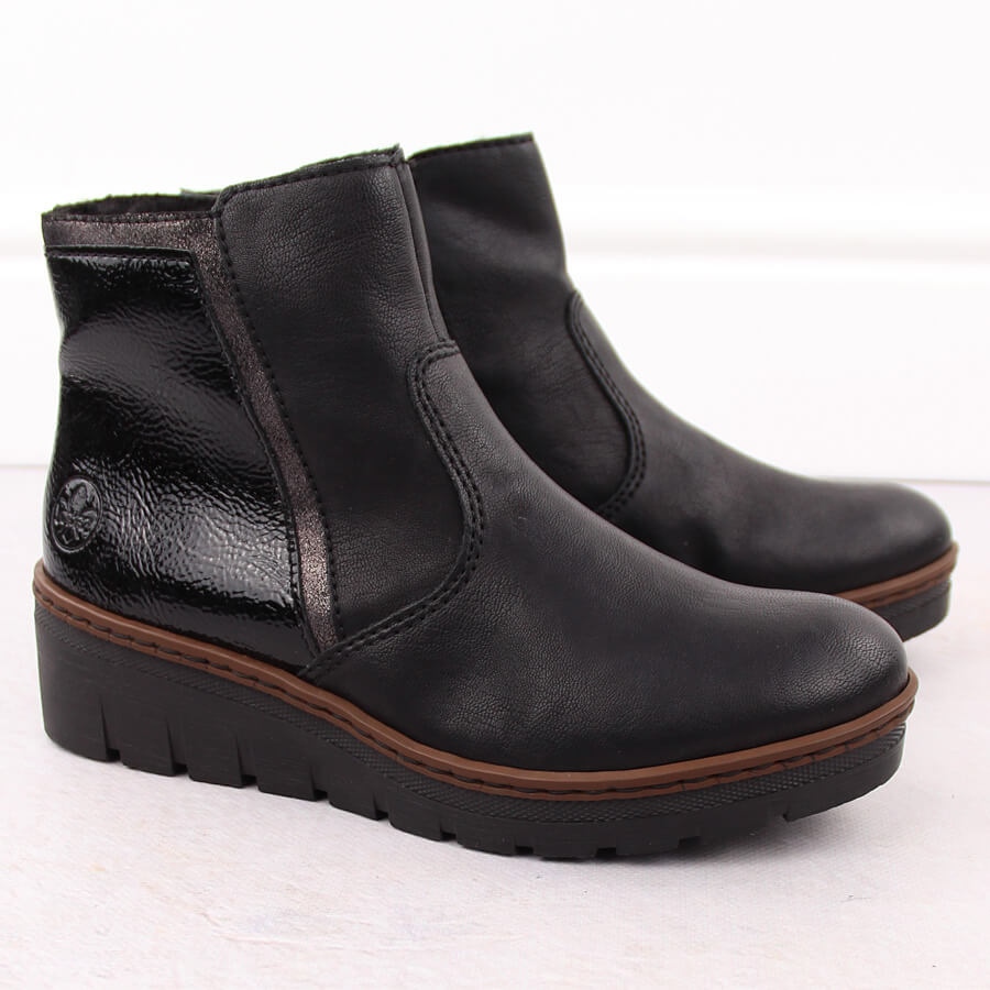 Detalhes: Botins femininos pretos envernizados confortáveis Rieker X9150-00