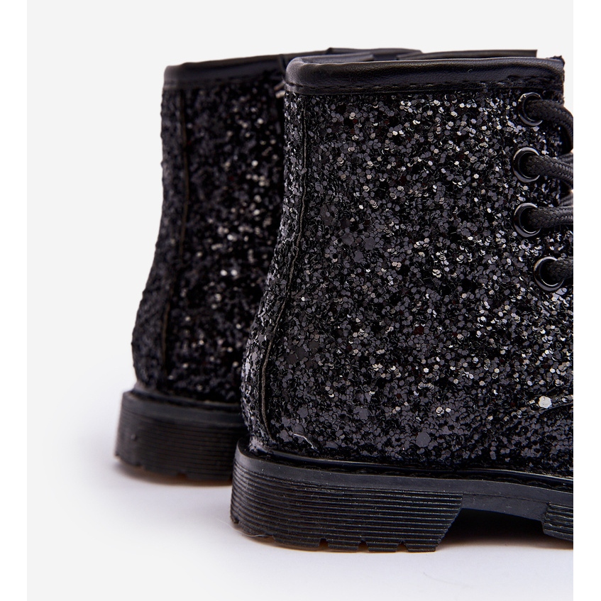 Detalhes: Botins infantis com isolamento de glitter e zíper, Saussa Preto