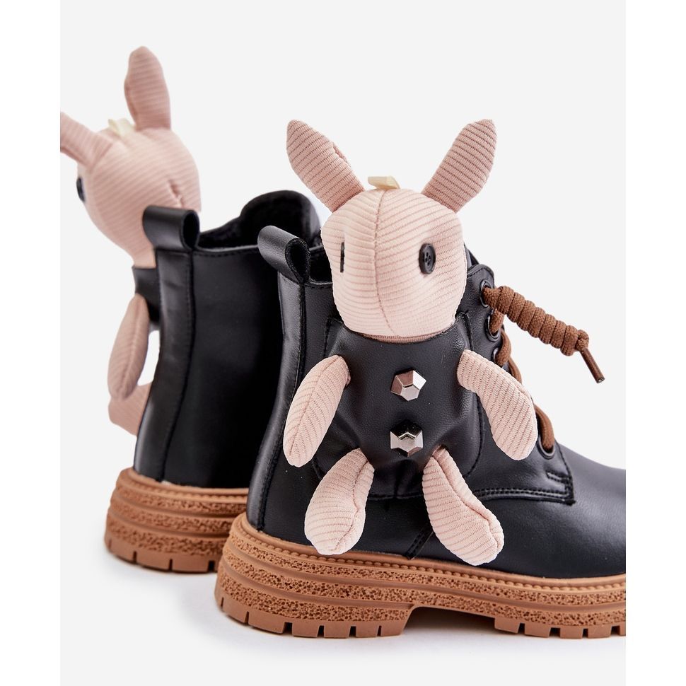Detalhes: Botins infantis quentes de couro com zíper e ursinho de pelúcia Vinceza 36261 Preto