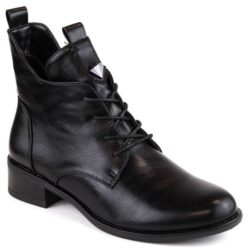 Detalhes: Botins isolados com cadarço e zíper M.Daszyński W SAN18, preto