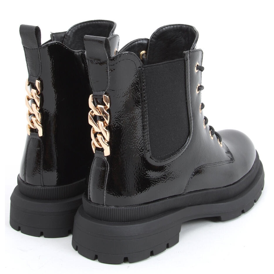 Detalhes: Botins laqueados com corrente Jake Black preto